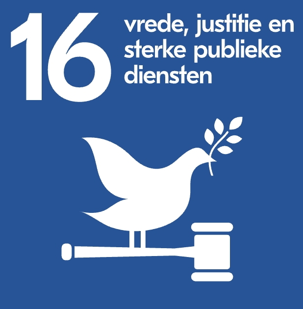 Wij zetten ons met de activiteiten in het programma Veiligheid in voor het bevorderen van vrede, justitie en sterke publieke diensten (GG 16).